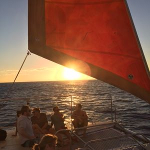説明が英語のみということで、日本人の参加は少なく、不安でしたが、大きなディナークルーズでは味わえないカタマランのサンセットクルーズに乗りたかったので参加!