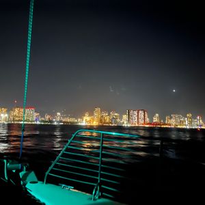 その後は、ダイヤモンドヘッド側へゆっくり長い時間をかけて船を走らせてくれるのですが、静かな夜風が肌に心地よく。真っ暗なダイヤモンドヘッドは圧倒的存在感で。遠くに見えるワイキキのキラキラした街並みもそれは美しく。もう開放感いっぱいに体中をリラックスすることが出来ました。