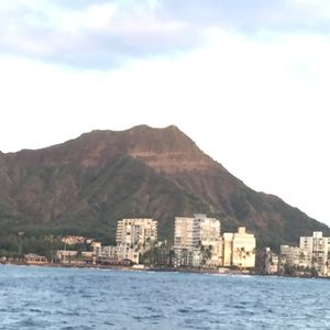 海側から見るダイヤモンドヘッドはワイキキらしさを感じます。また、夕日に照らされて刻々とワイキキのホテルに明かりが灯り綺麗です。