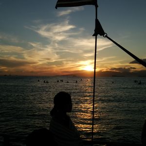 The sunset cruise gathers at 5:00 PM, but it's dangerous to cross from the Halekulani side due to high tide. Please make sure to go around from the Sheraton side. I've taken motion sickness medication and I'm fully prepared! I also brought a waterproof cover for my smartphone. Unlike a yacht, this boat is stable and won't rock, so even those prone to seasickness will be fine.