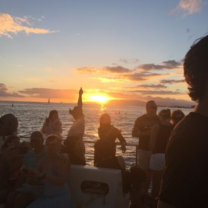 This was my first time participating in the sunset cruise, and I thoroughly enjoyed the bright smiles of the crew and the wonderful music. I was able to fully enjoy the waters of Hawaii, and the weather was great with calm waves! The cruise lasted longer than I expected, and we went close to Diamond Head, which made me very satisfied for the price! Out at sea, we sailed with the wind and were able to see a beautiful sunset on the way back. It was amazing!