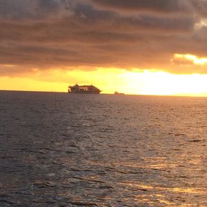船への乗り降りの波の高さに二人ではしゃぎ、夕日がおちるのをお酒飲みながら見れるとゆー初めての経験に感謝されました。