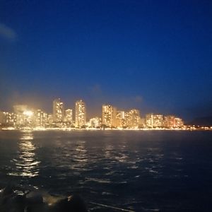 Friendly staff, music, Mai Tai, and the night view of Waikiki from the ocean. The slow cruise means no worries about seasickness. The atmosphere was lively, and a foreigner sitting next to me asked where I was from, which led to fun conversations with various people. When it got a bit chilly, I ordered a Mai Tai with no ice for a refill. Just before we arrived, some people were dancing to the latest music as the drinks kicked in! Families, couples, and groups of friends were all enjoying the night view in their own ways.