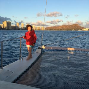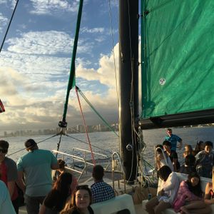 The catamaran was so much fun! You linger in the Waikiki harbor and wait for the sun to go down. Norhing like a sunset with Diamondhead in the distance. The cocktails were very good and the crew funny .... all in all, it was a wonderful hour and a half on the ocean