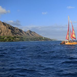 これ、とっても楽しかったです!遠くの雲にじゃまされてサンセットこそ見れませんでしたが頭上は晴天で、賑やかな船上・おいしいマイタイ・けっこうなスピード・他の船とのスリリングなニアミス!と、大満足の90分でした。ワイキキビーチから出航なのでアクセスも良かった。海から見るワイキキとダイヤモンドヘッドはやっぱり見逃せませんね~ ありがとうございました。