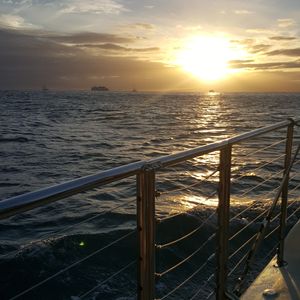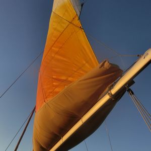 Cruising on the deep blue sea with vibrant orange and yellow sails. Enjoying delicious cocktails and juices with the navy blue sea, white waves, and a pleasant breeze. The sway of the yacht was interesting and fun... I even got to see dolphins jumping... This cruise allowed me to feel the sea, waves, wind, and comfort much more than the previous large ship dinner cruise.