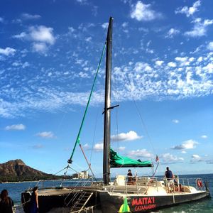 While sipping on a Mai Tai and watching the sunset, everyone took photos and chatted in their own way. We admired the hotels of Waikiki and Diamond Head, and when we turned around, we saw a bright red sunset on the horizon. There was hardly any rocking that day. It's recommended to wear beach sandals as you might get wet when getting on and off. VERTRA was very courteous with their email confirmations before and thank-you emails after. It mentioned that a passport is required for alcoholic beverages, but that wasn't necessary at all. Thank you for a great experience!