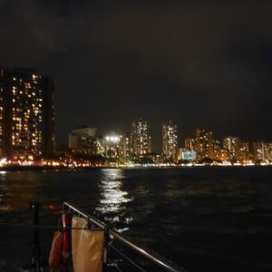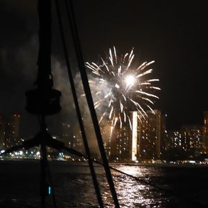 I participated in a night cruise where we could see the fireworks on Friday. The boat had minimal rocking, and the night view of Waikiki was amazing. With free drinks, we had unlimited Hawaiian cocktails, and it was quite lively. It's safe even for families with children, so I highly recommend it.