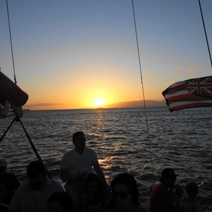 There were only the two of us who were Japanese. When the sunset appeared through the gaps in the clouds, everyone on board was thrilled and it was the best experience. The drinks included delicious cocktails, beer, and unlimited juice. It was said that if you buy a special container for $5, you can board first, and all 30 people bought it. As for the boarding location, if you use the corridor inside the Outrigger Reef Hotel, you can get there quickly without getting lost. If you don't know the location, the Japanese staff inside the Outrigger Reef Hotel will kindly help you if you show them your voucher, so please go to the meeting place from inside the hotel. (The outside route is hard to understand.) This course is not available through regular travel agency options, so it's a shame that there are so few Japanese people. The price is reasonable, and since the boat is a sailboat that lets the wind take you rather than a dinner cruise, the time passes very pleasantly. I did use the restroom, but it wasn't so dirty that I couldn't hold it. Even if you can't speak English well, interacting with foreigners is enjoyable. I definitely want to ride this boat again the next time I go to Hawaii. I recommend it.