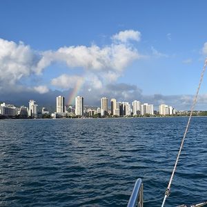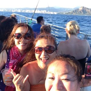 I went with my girlfriend. I was expecting a large ship for the cruise, but I was surprised it was smaller. However, this small size actually made it easier to communicate with the foreign guests around us. We had an amazing time! The Mai Tais on the boat were delicious, and I had about five of them. Of course, the sunset was beautiful, and seeing the rainbow near Diamond Head was very soothing. Initially, I was worried about the weather, but it held up, and we were able to end our last day in Hawaii on a high note! I highly recommend it! 😊