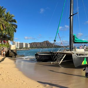 The team at Waikiki Sailing were a well-oiled sailing machine! The directions provided in the confirmation email were clear and easy to follow. Check in was smooth and the beach boarding only splashed us up to our shins. We decided to sit on the catamaran netting on a particularly windy day and were warned about getting splashed multiple times. We endured the soaking and had an amazing time, plus the crew helped grab our empties and snacks so we could continue to enjoy. I recommend Waikiki Sailing 10,000 times over!