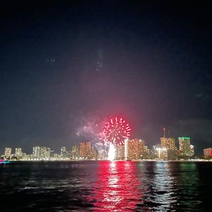 The friendly staff really gets everyone in a great mood. Watching the fireworks from a prime spot is the best. I'm engraving the view of Waikiki's night scenery into my heart during the cruise.