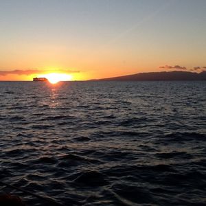 とても気持ちのいい時間を持てました!内容がわからずに連れて行った姪と義妹も大感激!船に乗船する手前のビーチですぐそばに亀に会って、出航したらその亀?が少し沖で泳いでるのが見れたし、サンセットは最高にキレイだったし・・・何回もハワイには行っていますが、初めてのワイキキでのクルーズだったし思った以上に感動しました。ただ、内容はサンセット見た後、ワイキキの光輝く夜の風景を見て帰ると書いてあったのに、わりと早く帰ったので、その後ビーチでヒルトンの花火を見る予定が時間がありすぎて止めたのが残念でした。