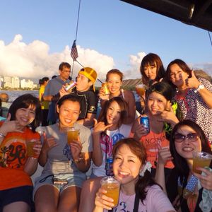 This was my second time participating, following last year's trip to Hawaii. The sunset cruise in Hawaii is typically enjoyed on a large ship while dining, but this tour is perfect for those who want to avoid a crowd of Japanese tourists and enjoy an open, thrilling cruise with unlimited drinks. The boat speeds out to sea quite quickly, making it quite exhilarating. With music playing, everyone gets into the groove. There are few Japanese participants, allowing for a unique camaraderie typical of foreigners, making this tour highly recommended. The crew also entertains with jokes, of course, in English... I realized that having at least a basic level of English conversation skills enhances the experience even more. I would love to join this tour again on my next trip to Hawaii.