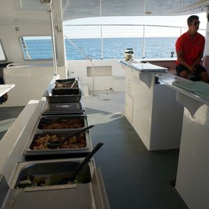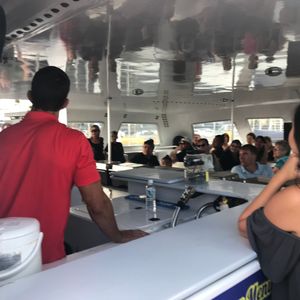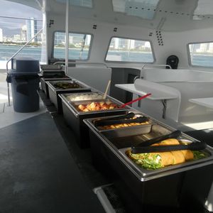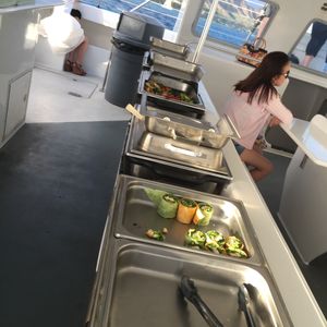 My wife and I enjoyed a very nice sunset dinner cruise the other night in the Makani catamaran. The night started off with a friendly driver picking us up at our hotel and bringing us to the boat. The only criticism of the whole night (very minor) is that we arrived at the boat around 4:40 but we're not able to "Check in" until 5 even though the girl was sitting in the booth waiting until 5. So rather than checking in as people arrived we now had an awkward line waiting to check in. Then we waited another 15-20 minutes to board the boat. Like I said, minor but the timing could have been better. Once aboard, the crew was great and got us quickly out of the harbor to enjoy the amazing views of the city and mountains. The food was as expected, a decent buffet. The drinks were good and reasonably priced.