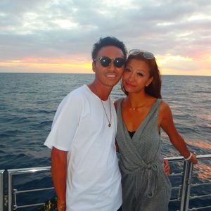 As for the cruise itself, the sunset was beautiful, and it was nice to take photos with Diamond Head in the background. The staff offered to take our pictures, which was a nice touch. However, because my expectations were high, it wasn't as romantic as I had hoped; it felt more like a casual cruise. We dressed up, but everyone around us was foreign and dressed casually in beach sandals, so we felt out of place.