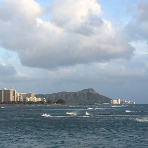 The staff were kind, taking photos for us and being very attentive. It was disappointing that we couldn't see the orange sunset >_<. However, I was happy to see a small dolphin! I was quite satisfied with the views of Diamond Head and the hotel nightscape. I recommend this tour for active individuals.