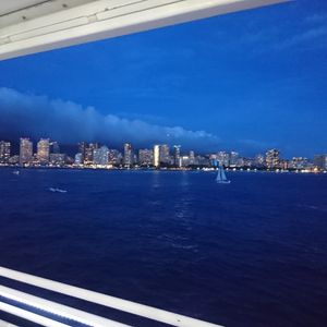 Additionally, we did the sunset sail, and passed a bunch of monohull sailboats, loaded with passengers counterweighting their boats and waving to us during the trip. Such beautiful sights (sunset on the water, gorgeous Waikiki/Honolulu area, beautiful water, and getting to see the monohulls slicing through the water)!