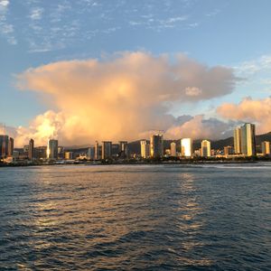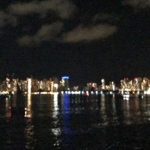 花火を目的で予約しましたが、夕日は最高だし、花火も最高でした、海から見える景色は遮るものもなく、夕日に輝くダイヤモンドヘッド、ホテル群、見ごたえがありました。
