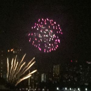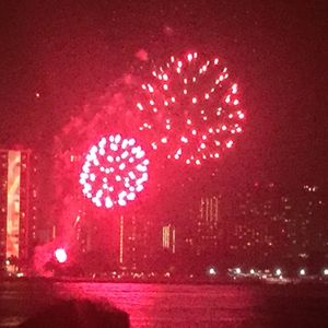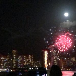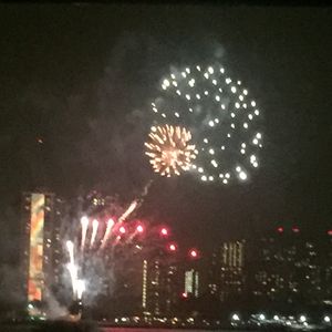 2階3階へは移動が自由でしたので、明るいうちにダイヤモンドヘッドを写真に収めるため先頭へ。夕日を観るため船尾へ。そして花火の時間。打ち上げは5分ほどでしたが満足の花火観賞でした。お天気が良く波もなかったので快適な船からの花火観賞でした。お天気と波は運次第ですね。祈るしかありません。