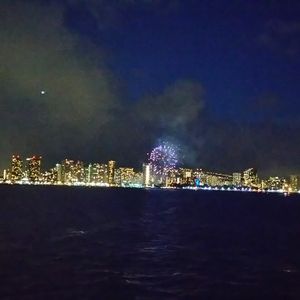 My wife and I did this cruise on our last night in Hawaii and we are so glad we did. We had a beautiful sunset to the west, Honolulu and Waikiki North, and the moon rising over Diamond Head to the east. To top it all off there was good food and the awesome fireworks show. Seeing these from the water is something I highly recommend.