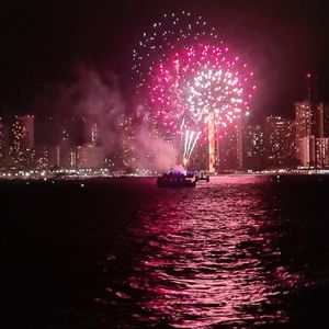 ワイキキの街とともに見る花火は、洋上からしか味わえない最高のものでした。
