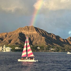 The woman in charge of the sunset and the hall left a strong impression! She took photos with us and welcomed us with her best smile, which made us feel warmly welcomed to Hawaii. However, we were able to see the fireworks in Waikiki from the boat, but coming from Japan where we are used to fireworks, we couldn't shake off the feeling that they were a bit underwhelming...