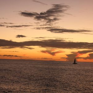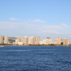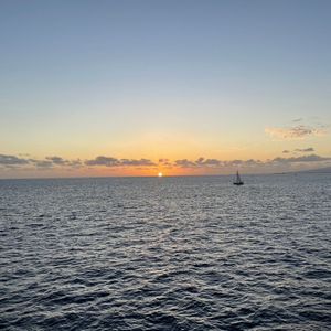 After departure, you can see Waikiki and Diamond Head on the left side, and the sunset from the right side towards the stern.
