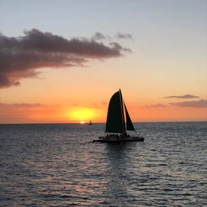 On my first trip to Hawaii, I participated in a sunset cruise on the last day! It was a wonderful sunset fitting for the final day, and we enjoyed a variety of shows. The food was delicious too! 😊