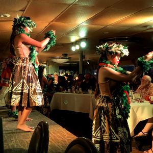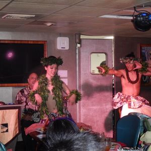 、予約しているコースを分によって色が違う。うちは安いコースだったので、若干気まずかった。笑 バス一階の船室で、満席にはなっておらず。料理は全体的に普通。お肉はおいしかった。主人はカニを何度かおかわりしていた。ハワイアンのショーは圧巻。客席が埋まっていない箇所のダンサーも全力だった。途中、屋上デッキにも出られた。一点だけ残念だったのが、室温。冷え対策で、ちょっと厚めのパーカーを持参していたが、それでは全く意味がないくらい、船室は寒かった…。私が特別寒がりなせいかもしれない。隣の韓国人カップルの女性はキャミソールだったので。サンセット、船からみるハワイの夜景はとても綺麗だった。自業自得だが、寒くて心から楽しめなかったため、★3つで。冷え性の方は本当に暖かくしていってくださいね。
