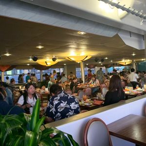 We participated on the first day of our honeymoon. Since neither of us is a big eater, we made a reservation for the 1-star course. When we got on the shuttle bus, we received stickers to wear on our clothes, but the colors indicated the different courses we had reserved. Ours was the cheaper option, which felt a bit awkward. The dining area on the first floor of the bus was not fully occupied. Overall, the food was average, but the meat was delicious. My husband went back for seconds on the crab several times. The Hawaiian show was impressive, and the dancers in the empty sections of the audience gave it their all. We were also able to go out to the rooftop deck at one point. One disappointing aspect was the room temperature. I had brought a slightly thicker hoodie for warmth, but it was so cold in the dining area that it didn't help at all... I might just be particularly sensitive to the cold. The woman from the Korean couple next to us was in a camisole. The sunset and the night view of Hawaii from the boat were very beautiful. I regret to say that I couldn't fully enjoy it because of the cold, so I give it 3 stars. If you're sensitive to the cold, please make sure to dress warmly.