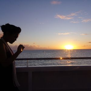 The sunset was beautiful, but the show on the ship was great because it had a story. Even though we didn't speak the same language, I understood it well. The wedding dress was impressive.