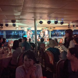 I participated with my mother. We chose a course that included taking commemorative photos, so we enjoyed the beautiful scenery, didn't experience any seasickness, and had a great time with the food and the show. Now I wish we had joined in the dancing at the end, haha. We were also able to see the Hilton fireworks from the boat, which truly became a wonderful memory!