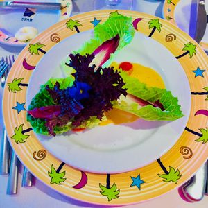 食事は思ったより良かった。前菜、肉げ美味でした。ショーは大した事なし。花火は五分で終了。