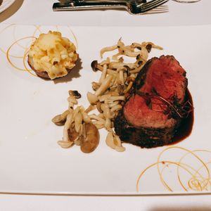 The appetizers were disappointing, the salad wasn't tasty, the lobster was delicious (^~^), and the steak was the worst.