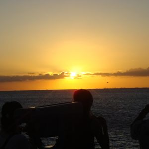 船内はにぎやかで、お料理もおいしく、滞在中雲に隠れたりできれいな夕日が見れていなかったんですが、船上から水平線に沈むきれいな夕日が見れてとってもいい記念になりました。