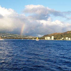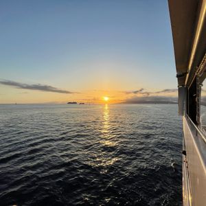 After departure, you can see Waikiki and Diamond Head on the left side, and the sunset from the right side towards the stern.