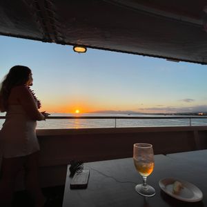 I participated in the Sunset Dinner Cruise on August 26, 2022. The weather was nice, and I was seated in a spot where a pleasant breeze was blowing. We were welcomed with a drink.