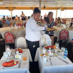 Totally enjoy the whole cruise! From the atmosphere, food, service and total entertainment was so enjoyable. My friends and I had a great time!