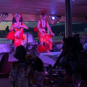 My adult daughter and teenage son and I had an amazing time. From the warm welcoming from the hula dancers and music being played to the staff. I had a reserved table with the view of the water. Beautiful set up. The food was delicious and beautiful presentation. Our waiter was very attentive. Enjoyed the dancers/performance and music. The fireworks show from Waikiki because it was on a Friday night was absolutely beautiful while being on the water. The fireworks were okay wished it was more of them but it was nice just the same. I highly recommend this cruise. We went in July 2022