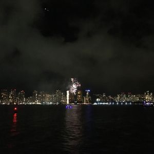 当日は曇りでサンセットが今一でしたが、金曜日なのでHILTONの花火はとても素晴らしかったです。想像していた以上の乗客数にびっくり、食事はディナークルーズというよりは込み合った騒がしい宴席って感じでした。