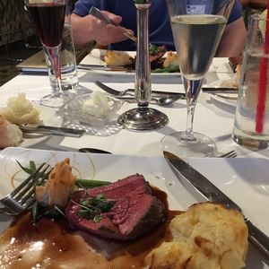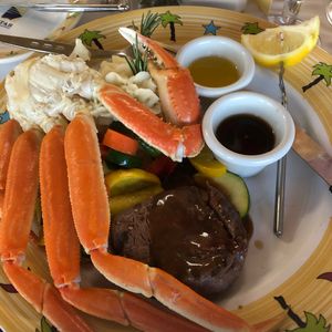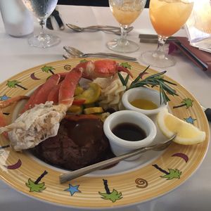 The food, including the whole lobster and steak, was better than I expected and delicious.