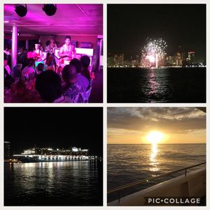 夕日や夜景がすばらしかったです。金曜日だったので船上から花火も見えました。お料理はまぁまぁという感じでしたが、ドリンクは南国らしいかわいいカクテルがたくさんありました☆