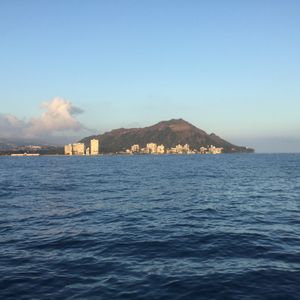 During the two-hour cruise, there was live music and shows happening right in front of us the entire time. The staff were all smiling, and it was a happy experience. The buffet food was a bit disappointing, but the sunset and the view of Diamond Head were absolutely fantastic.