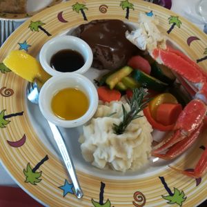 船の食事なのであまり期待していなかったのですが、前菜、メインのステーキとカニはもちろん、アイスまですべてが美味しかったので大満足でした。