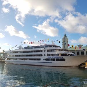 My husband and I had a spectacular time on this 5 star dinner cruise. We've lived here for 11 years and this was our first time experiencing the elegance and absolute superb 5 star dinning experience the Star of Honolulu offers. From start to finish everything was spectacular. We were treated like VIP's. We were greeted and warmly escorted to the boat where we partook of some extremely delectable pupu's while being serenaded by a Polynesian dancer and ukulele player. We were also introduced to the Captain of the ship and was afforded a photo op with him. As the evening progressed the boat set sail and the 7 course meal did not disappoint. We ate until our belly's were super tight. Did I mention the majestic sunset we watched from our window seats? Simply amazing! We also enjoyed the top shelf drinks that were apart of the menu. But not to worry if you are not an alcohol drinker there are many non-alcohol drinks to choose from.