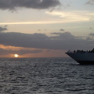 風が強い割には、船が大きいせいか大して揺れを感じることもなく、夕日、日没、ワイキキの夜景と景色を満喫することができました。