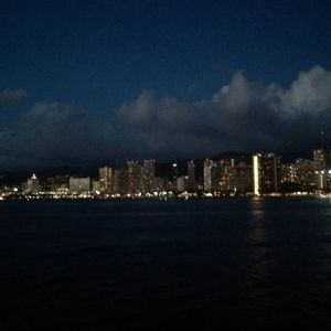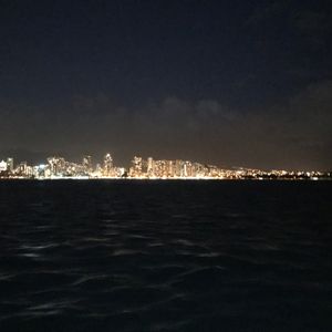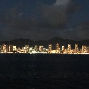 We departed in the evening and returned around 8 PM, but the views were stunning, including the sunset sinking below the horizon, Diamond Head from the sea, and the night view of Honolulu.