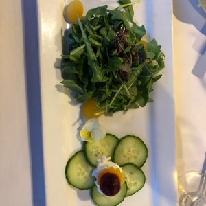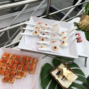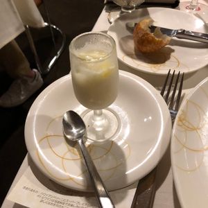 Before taking our seats, we enjoyed a non-alcoholic welcome drink and three types of finger foods outside.