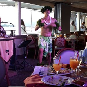 The sunset was beautiful, and the food was delicious. The lobster and steak were especially tasty. The dance show before returning to port was also fantastic. The ship was large, stable, and didn't sway. I enjoyed the time spent crafting while overlooking Waikiki Beach.
